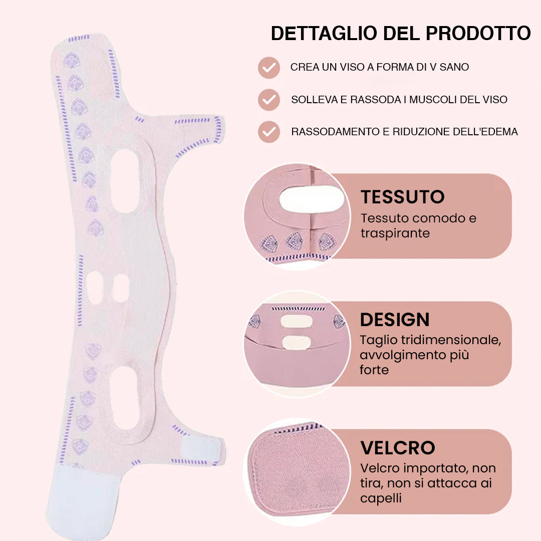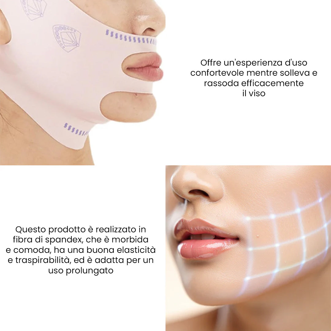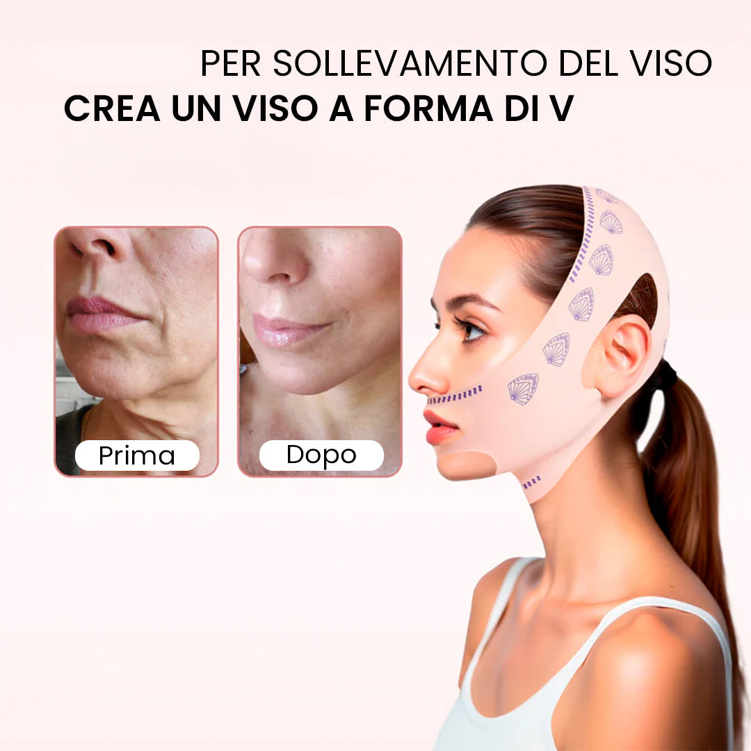 Solleva e scolpisce delicatamente la parte inferiore del viso, contribuendo a ridurre il doppio mento, il rilassamento cutaneo e il gonfiore. Con un uso costante, aiuta a definire la linea della mascella e a creare un contorno del viso più snello, a forma di V.